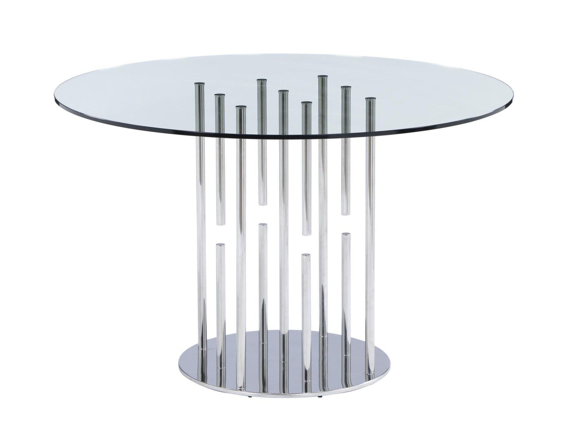 Dining Set with Contemporary Round Glass Table & Modern Contour-Back Chairs