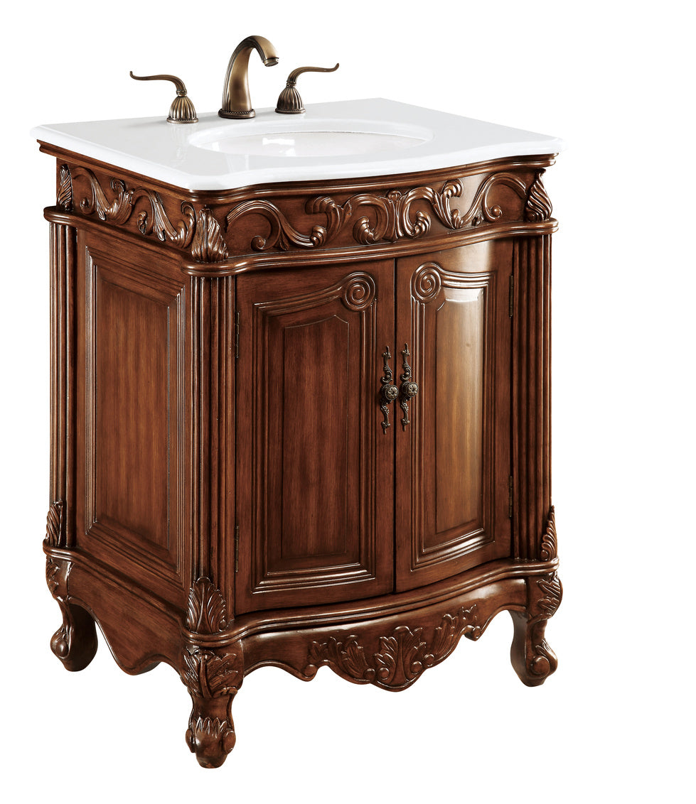 27 inch Single Bathroom vanity in Brown with ivory white engineered marble