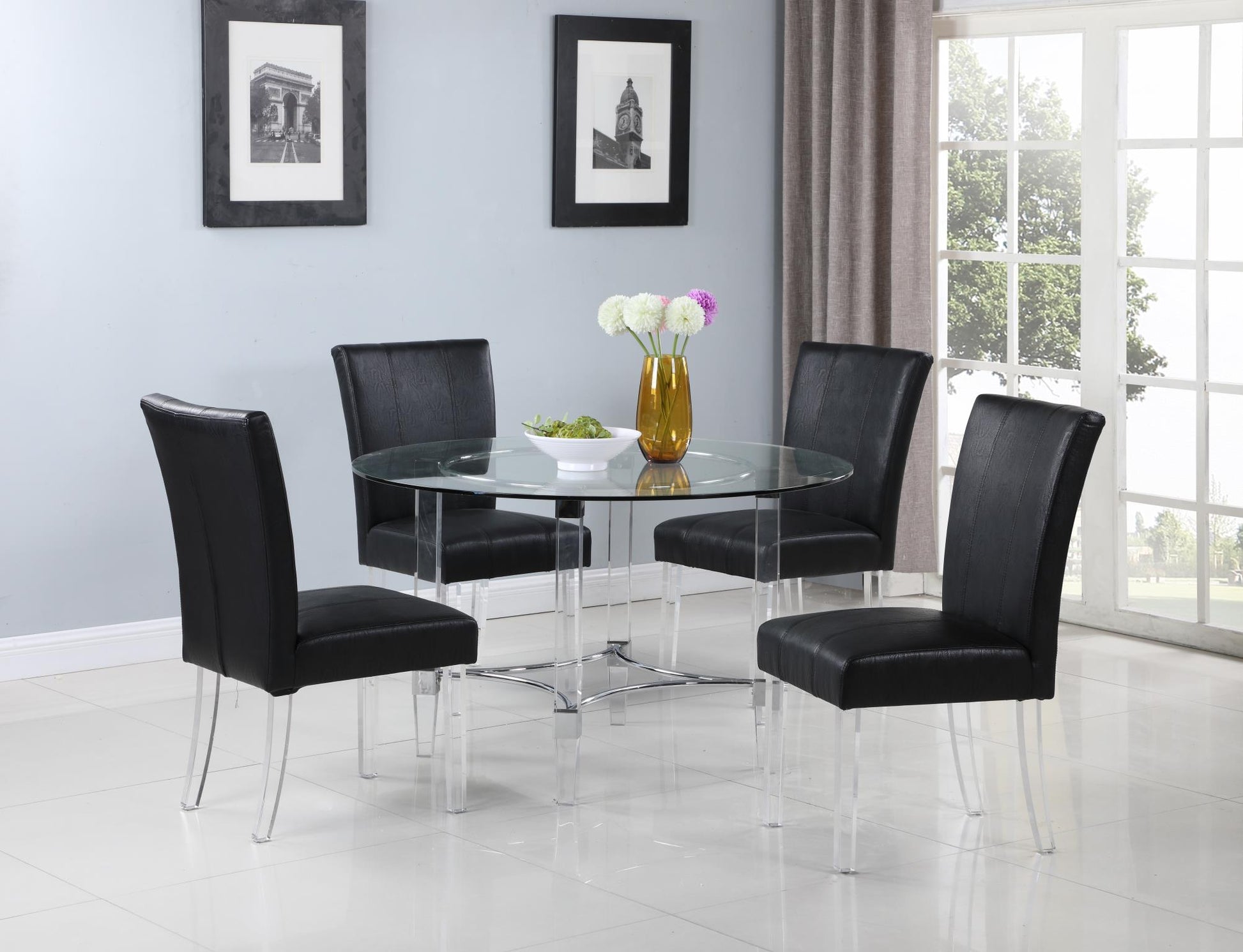 Contemporary Dining Set w/ Round Glass Dining Table & Parson Chairs