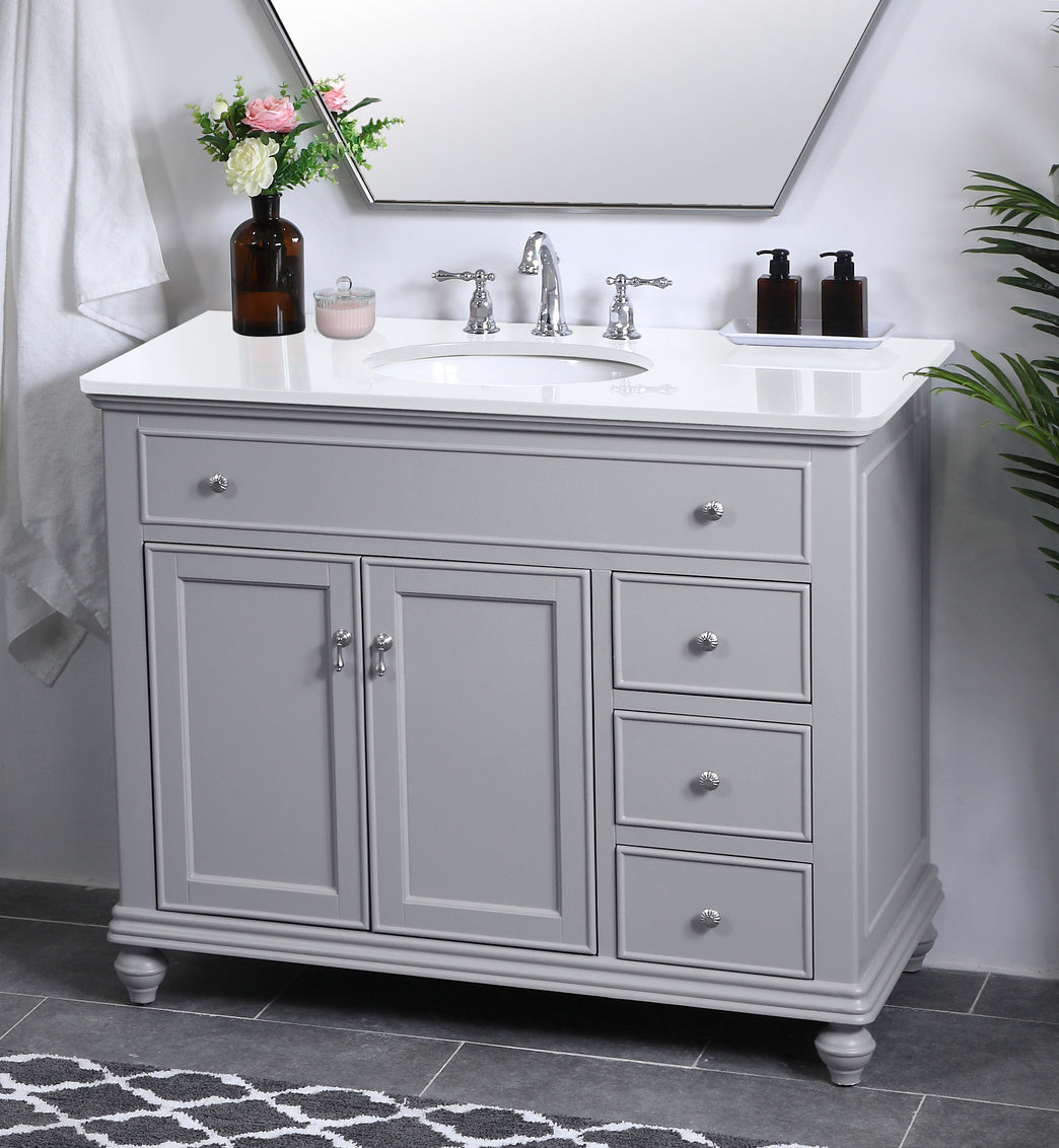 42 inch Single Bathroom vanity in light grey with ivory white engineered marble